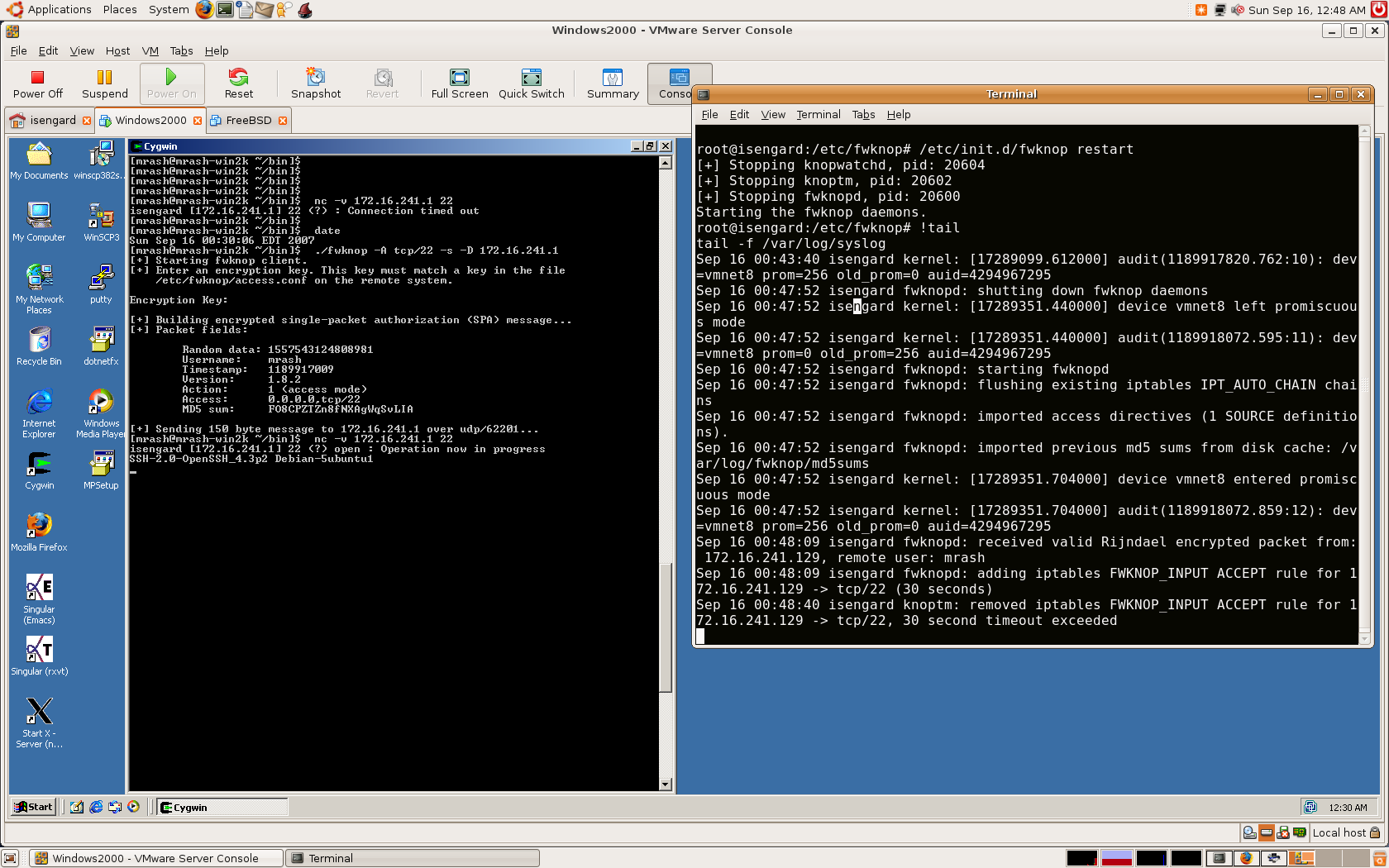 were added. Here is a screenshot of the fwknop client running under Cygwin on